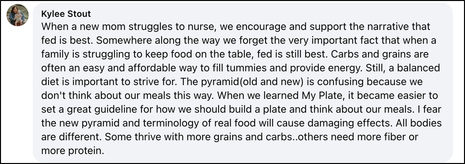 Far too many people refer to the DGAs for these guidelines to be confusing and divisive. In my opinion, this iteration of the DGA needs fewer politically charged directives such as “war on protein” and “the old food pyramid was really corrupted” and more clarity and structure to truly help Americans eat healthier.